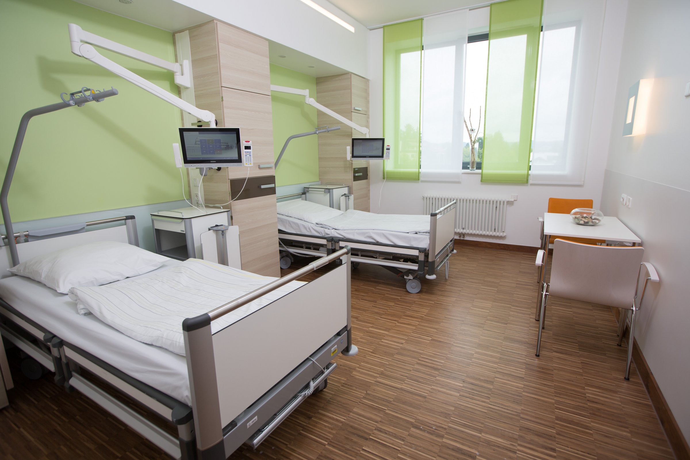 Die Patientenzimmer der Geriatrie befinden sich im Bauteil A und die Patientenzimmer der Frauenklinik in Bauteil C.